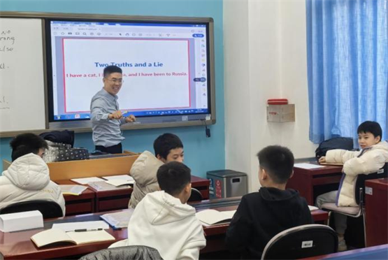 英语课堂上王赞老师与跳水队员们课堂互动