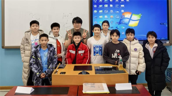 历史课王海萌老师与跳水队员们的课后合影