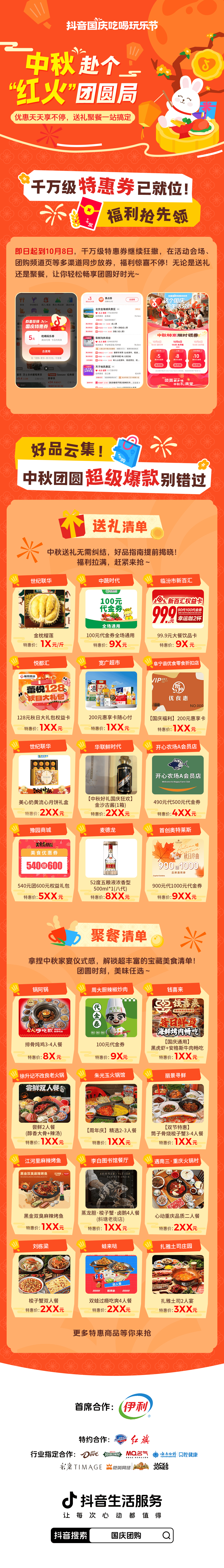 国庆假期已过半,转眼马上中秋,团圆时刻值得期待,但谁又悄悄陷入了“送礼焦虑”和“聚餐选择困难”?别急,「抖音国庆吃喝玩乐节」攻略已备好!快来一键解锁“过节妙招”,让你的中秋团圆更有味儿!现在上抖音搜索「国庆团购」,千万级特惠券领不停,更有中秋好品指南和宝藏美食清单给你提供送礼、聚餐灵感!赶紧跟着下方攻略玩转中秋,准备好收获来自亲朋好友的一致好评吧!