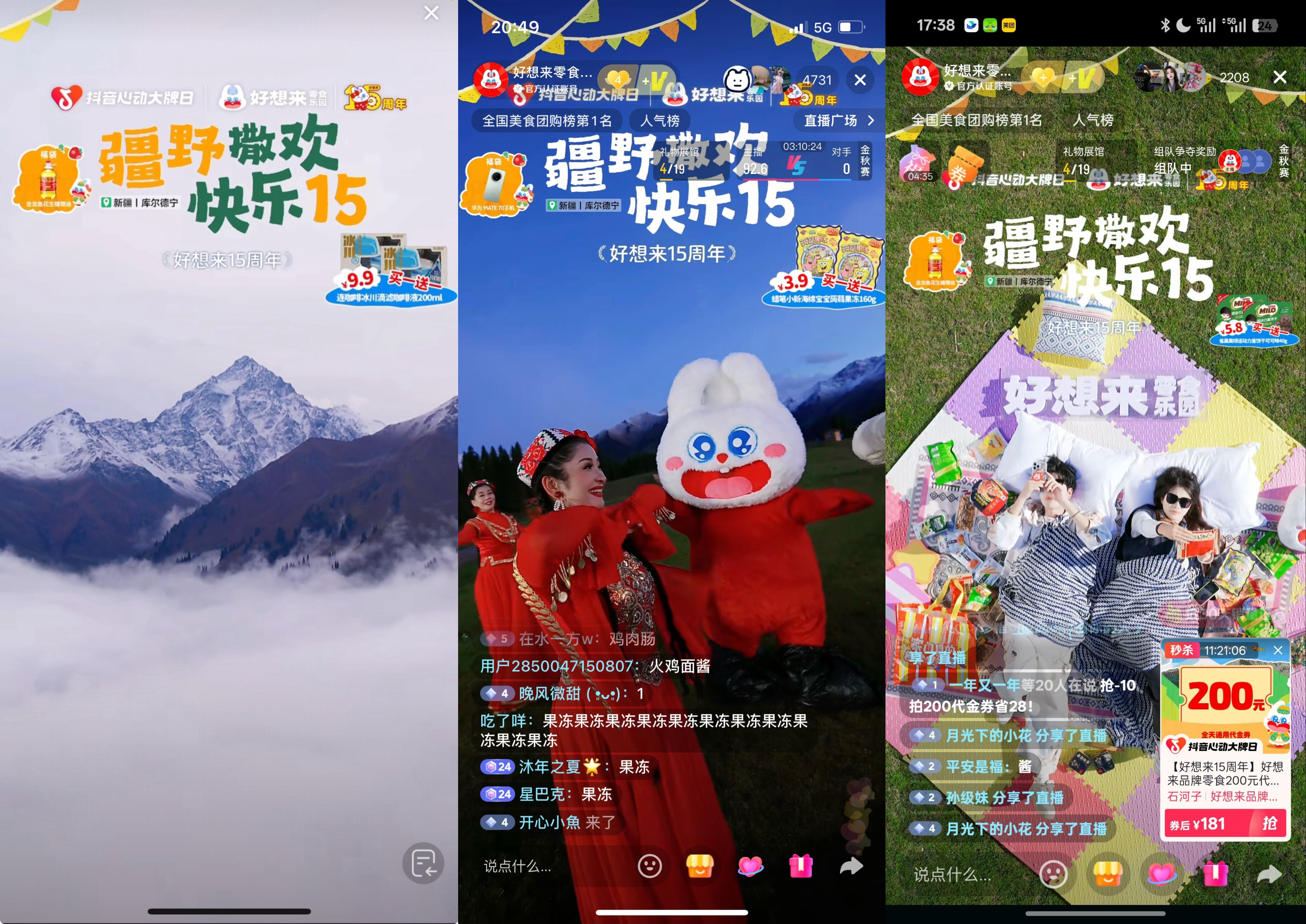 如果说极具竞争力的货盘是此次活动稳固的“硬实力”,那么充满想象力与沉浸感的直播内容,则是引爆活动的“软内核”与灵魂所在。好想来大胆地突破了传统直播的物理边界,将整个直播间搬至风光如画的新疆库尔德宁草原,开启了一场为期三天的“疆野撒欢 快乐15”沉浸式户外直播盛宴。