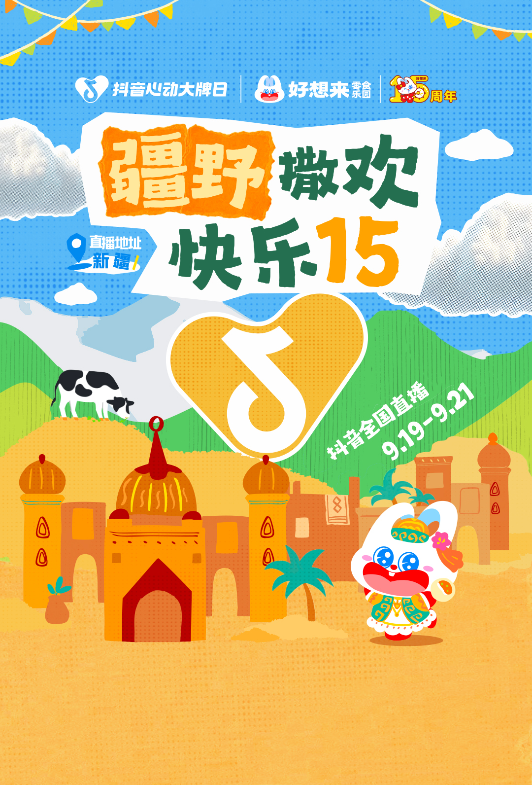 好想来精准地抓住这一破局点,在15周年的关键节点,品牌与「抖音心动大牌日」深度绑定,以「疆野撒欢 快乐15」为主题,打造了一场贯通线上与线下的零食狂欢。这远非一次简单的资源置换,而是一场以“内容场景创新为核心、独家货盘为基石、全域引流为引擎”的系统性战役。通过将线上新疆外景直播的强内容势能与线下超万家门店的实体势能深度耦合,好想来打破了零食消费的传统场域限制,用充满故事性的内容为货品注入灵魂,推动品牌完成从“家门口的零食乐园”向“快乐生活提案者”的价值跃迁。