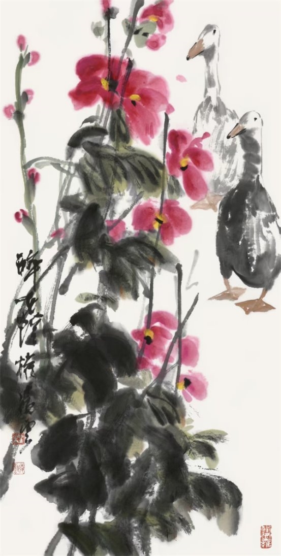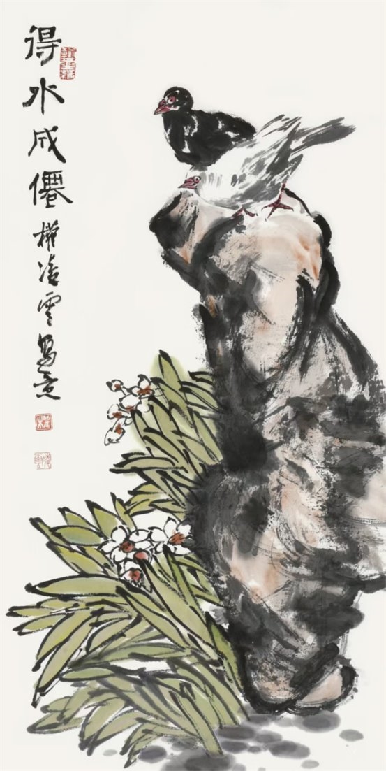 在绘画领域,权凌云虽起步于人物画,却在花鸟画领域走出了自己的特色,其作品不仅入选2016年“翰墨青州·全国中国画作品展”(中国美术家协会主办),更被恩师马海方评价为“色足墨饱、艳而不俗”——这六个字,精准概括了他花鸟画的艺术特质,也体现了他对传统花鸟画的独特理解与创新表达。