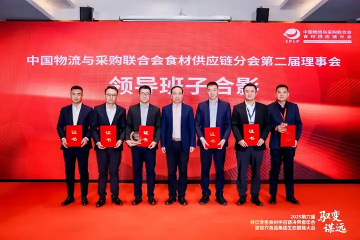 2025年12月4-5日,由中国物流与采购联合会主办,中国物流与采购联合会食材供应链分会、北京首农食品集团有限公司联合承办的“2025第六届餐饮零售食材供应链决策者年会暨首农食品集团生态赋能大会”在北京召开。会议以“驭变·谋远”为主题,餐饮零售企业、食材生产加工企业、食材供应链企业&经销商等共计500余家企事业单位参加。