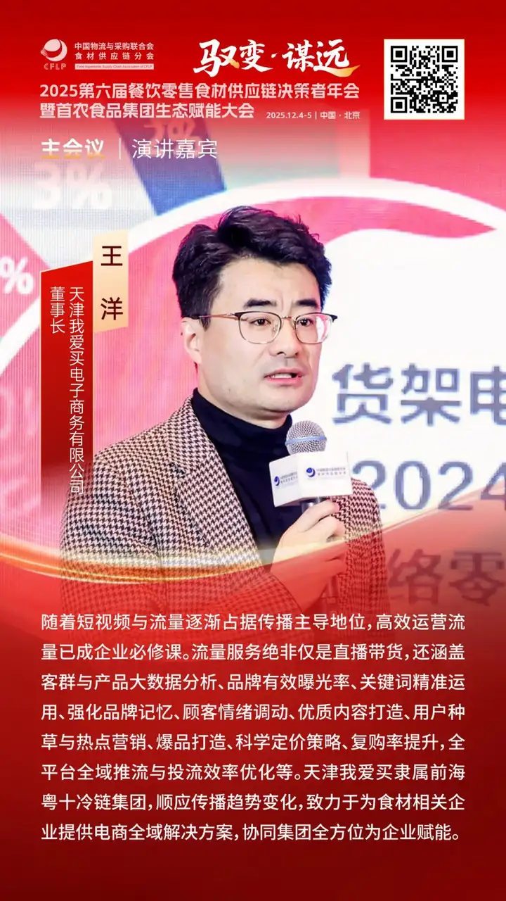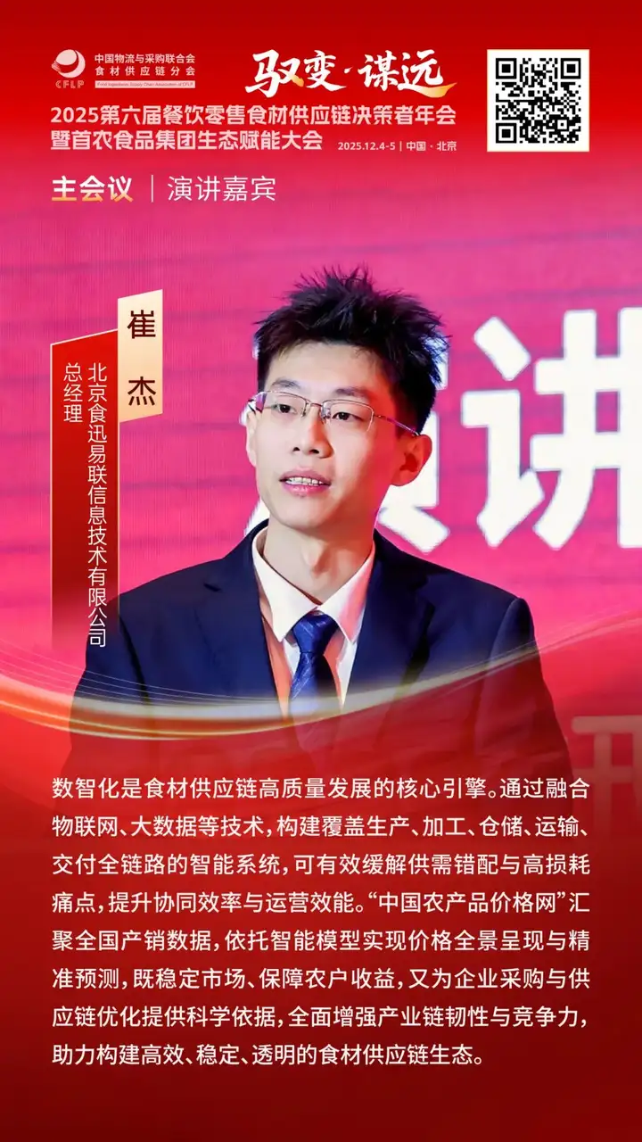 12月5日,2025第六届餐饮零售食材供应链决策者年会暨首农食品集团生态赋能大会正式开幕。中国物流与采购联合会副会长兼秘书长马增荣,中国物流与采购联合会食材供应链分会轮值会长&首农食品集团党委常委、副总经理兼北京水产集团党委书记、董事长宗祎出席并致辞。