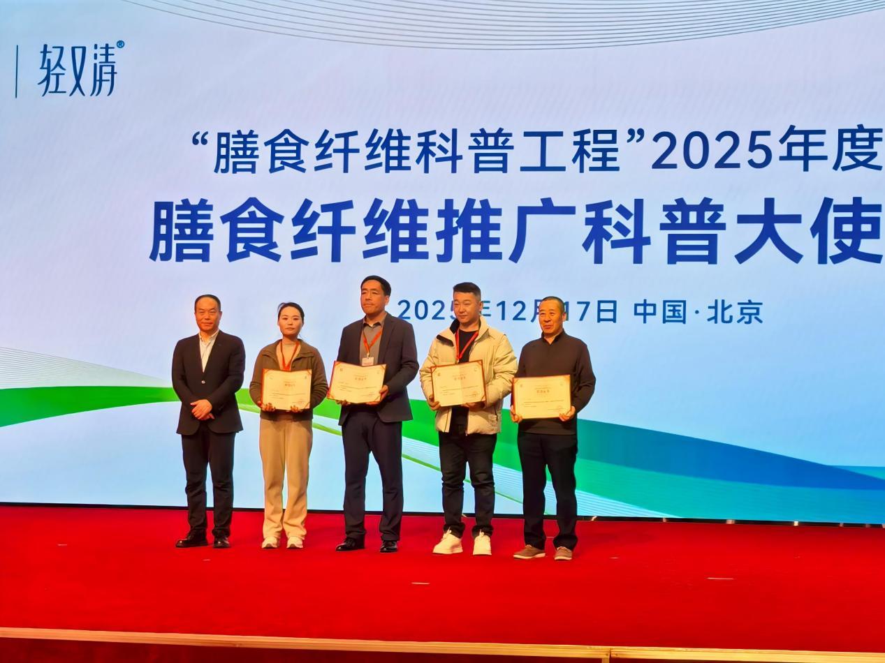 会议同期举行了表彰仪式,鉴于在推动燕麦产业发展、普及膳食纤维科学知识方面的持续贡献,阴山优麦董事长卢文兵被授予“膳食纤维推广科普大使”称号。卢文兵在获奖后表示,阴山优麦长期致力于从育种、种植到加工的国产裸燕麦全链条创新发展,未来将继续携手各界,开发更多符合国民需求的健康产品,并积极投身科普教育,让科学的膳食理念深入人心。