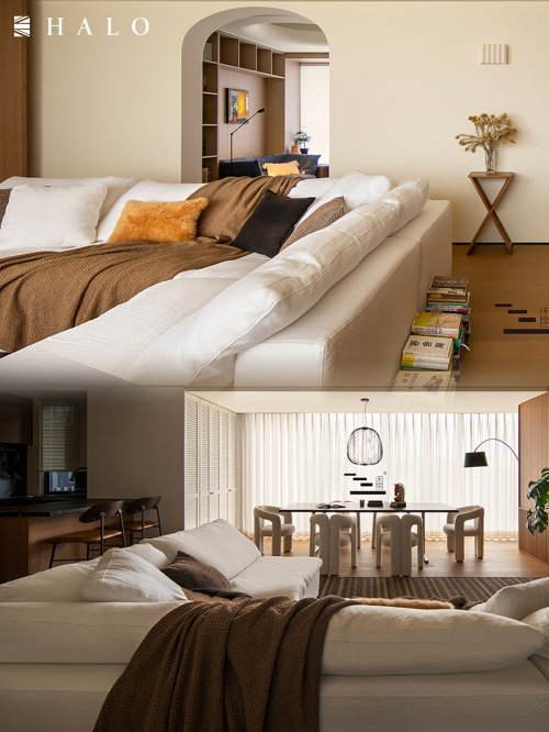 极简的精髓,在于其对材料本真及结构逻辑的执着。它摒弃冗余,却无比重视光影与触感的微妙平衡。HALO的产品完美承接这份哲学。其中HALO云沙发更以纯净的形态与亲肤的质感和慵懒的座感,在极简的空间中如同一朵柔软的云,瓦解可能存在的疏离感。