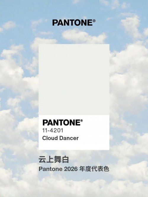 近日,国际色彩权威Pantone发布了2026年度代表色「PANTONE 11-4201 Cloud Dancer(云上舞白)」,不像往昔那些浓烈张扬的年度色,潘通的官方描述揭示了这一色彩是带有微妙暖色调的白色,仿佛阳光透过薄云时的柔和光晕。让白色不再是单纯的视觉数据,而是一种情境化的体验,一种光线、媒介与感知主体共同作用的产物。