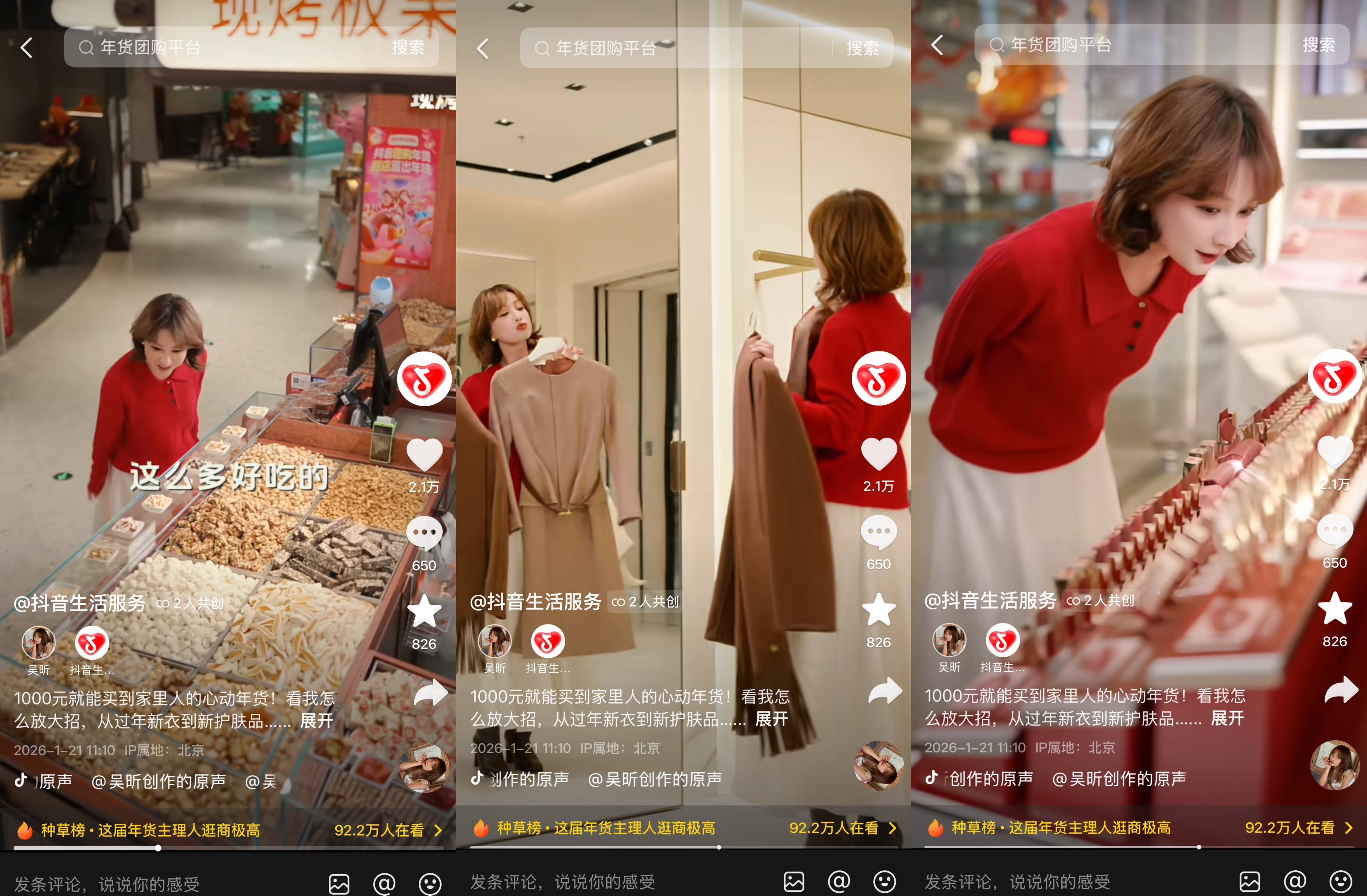 更多有趣的年货采买玩法,点开#这届年货主理人逛商极高 话题就能看到。@大眼东、@放扬的心心、@维多利亚夫妇 等多位达人将带你把千元预算玩出新花样,可以和好友互送年货“盲盒”、用千元预算团出万元“排场”、“特种兵”式高效搞定全家年货……把快乐和年味一起拿下!