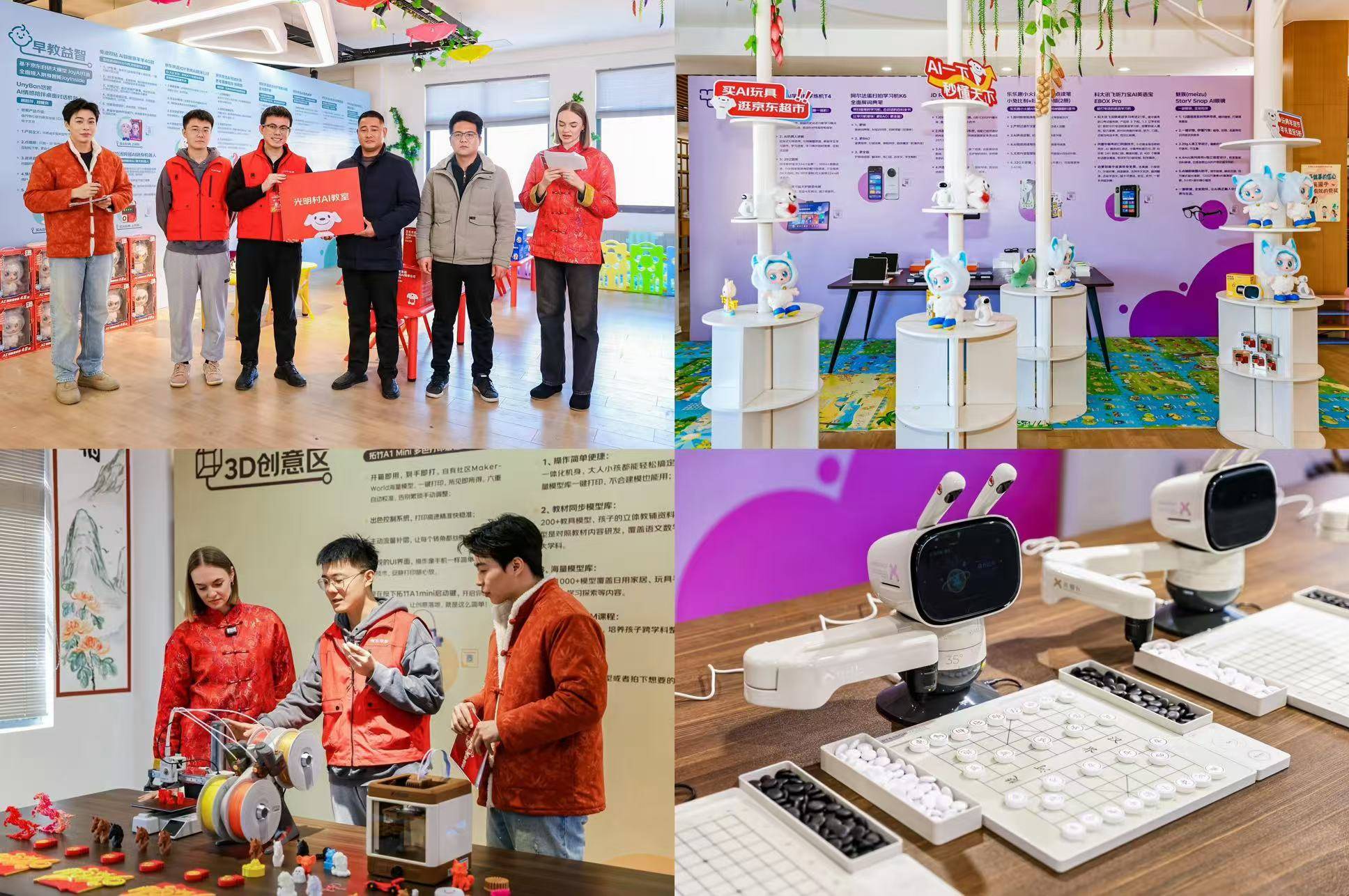在村晚热闹开演、年货大集红火开启的同时,光明村全新落地的AI教室也迎来了不少乡亲体验。这是刘强东为家乡量身打造的科技空间,以简约实用的设计融入乡村日常,让科技以温柔的姿态走进乡亲们的生活。