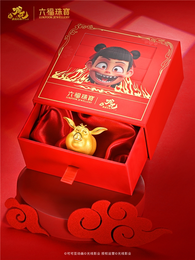 自六福珠宝携手现象级影视IP—电影「哪吒之魔童闹海」推出联名系列以来,灵韵交辉、鲜明生动的哪吒元素足金首饰与「我的“饰”界 我定义」的率性主张,持续赢得跨越代际的消费者青睐。为承续国漫新潮,2026年新春佳节之际,六福珠宝X电影「哪吒之魔童闹海」系列焕新贺岁,重磅推出飞天猪足金摆件、哪吒足金手机贴、敖丙足金手机贴三款全新臻品,再度妙趣诠释这一经典神话的当代意象,以玲珑之形、精妙之艺,重铸跨越千年的祥瑞吉寓,为2026年的开启,注入一份源自东方神话的炽热祝福。
