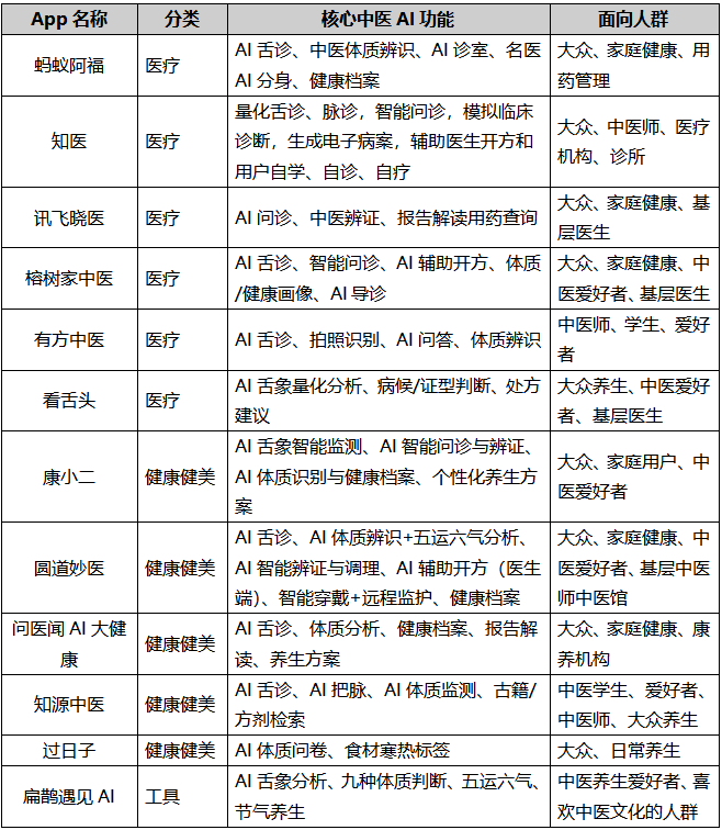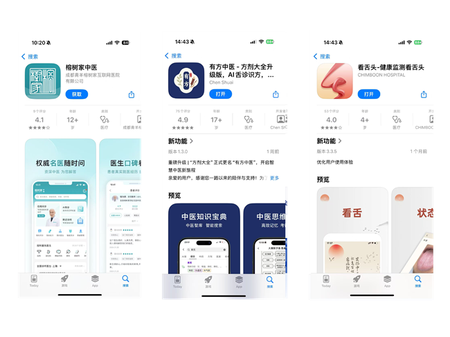 而苹果App Store审核严苛,能通过审核、支持用户直接下载、稳定运营的中医App总数不超过20款,真正具备AI诊断能力的更是个位数。绝大多数炒得火热的AI中医大模型在苹果应用商店完全搜不到,所谓“技术领先、行业首创”不攻自破。
