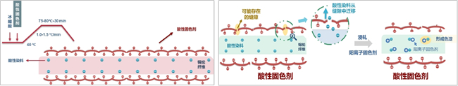 锦纶固色剂(阴离子型、阳离子型)的作用机理图