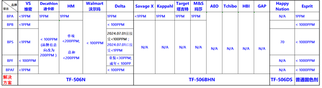 各品牌或客户对布面双酚含量要求(持续更新)
