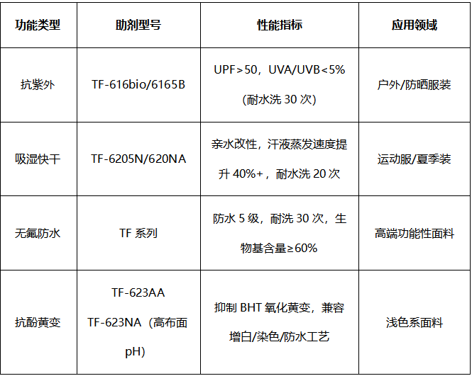 ①基础物性提升:手感调节(柔软/挺括);防护性能(防水/抗菌);