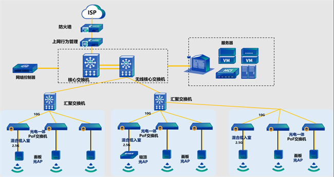 山东财经大学宿舍、办公场景均选用Wi-Fi 7光AP2.5G上行,为学生提供更高带宽,提升网络使用体验;教室场景选用入室光盒及高密Wi-Fi 7AP,为教学提供更优质的校园网络体验。