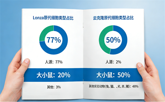 1、差异性展示:国内外两家极端原代细胞厂家Lonza与云克隆(Cloud-Clone)